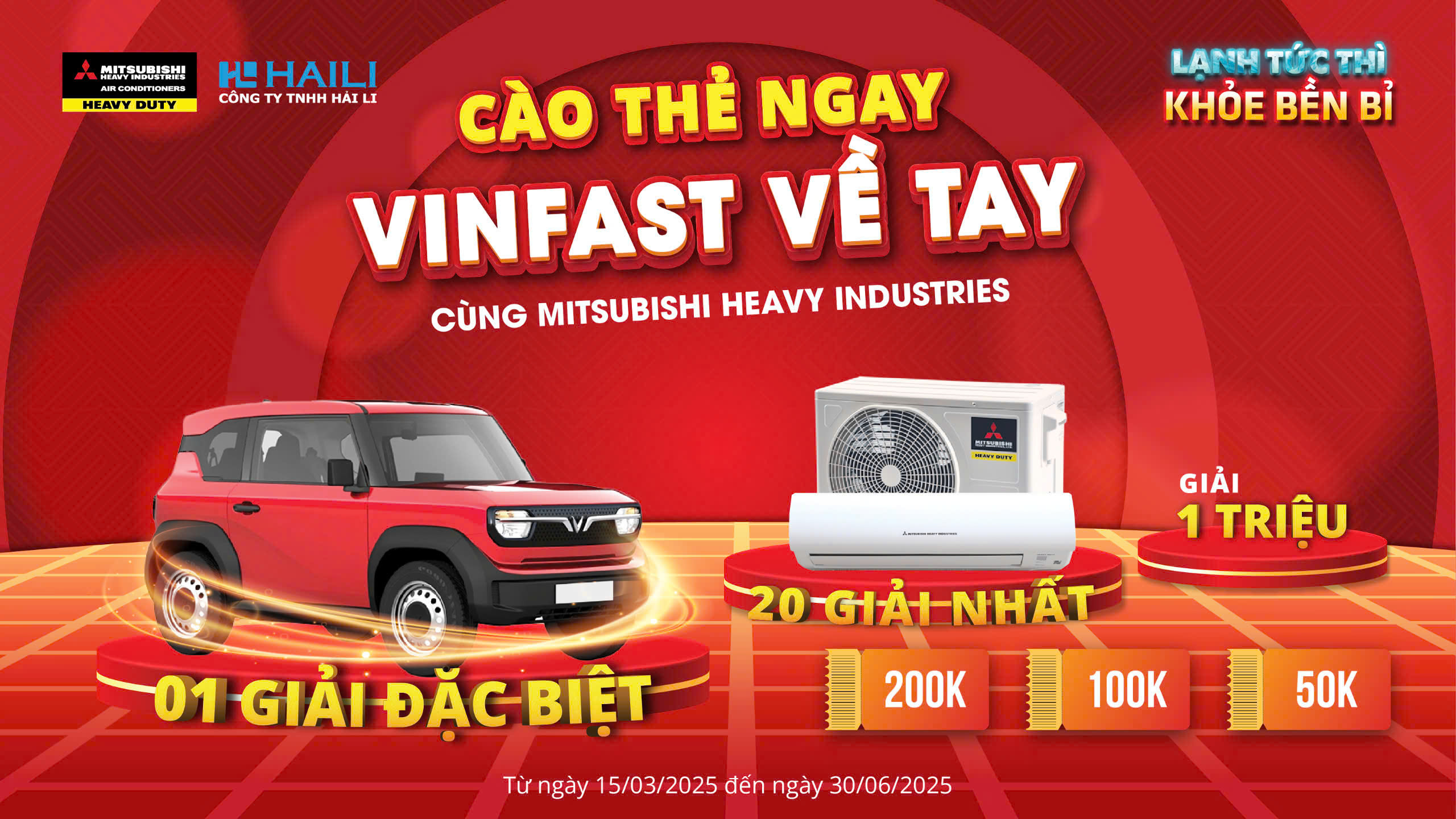 #MitsubishiHeavy #VinFastVF3 #CàoThẻMayMắn #KhuyếnMãi #ĐiệnLạnhNamViệt #ĐiềuHòa #MùaHè #LạnhTứcThì #BềnBỉ