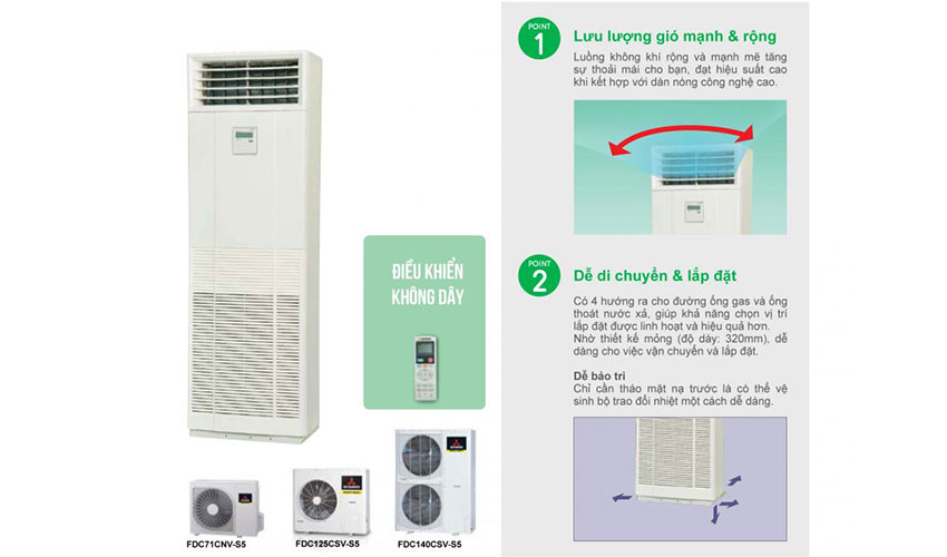 Điều hòa cây Mitsubishi Heavy FDF140CSV-S5/FDC140CSV-S5 1 Chiều 48000Btu thuộc dòng điều hòa thương mại dàn nóng được sản xuất ở Thái Lan và dàn lạnh được sản xuất ở China